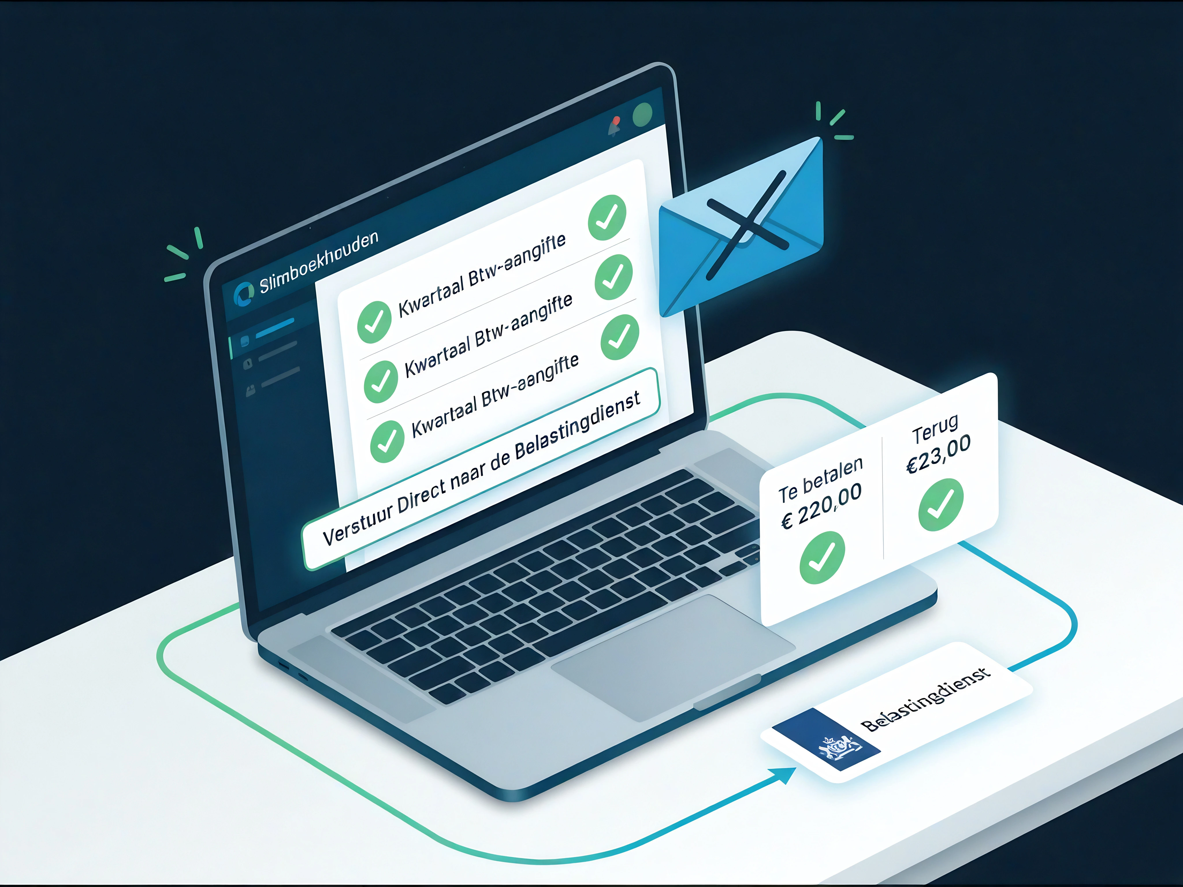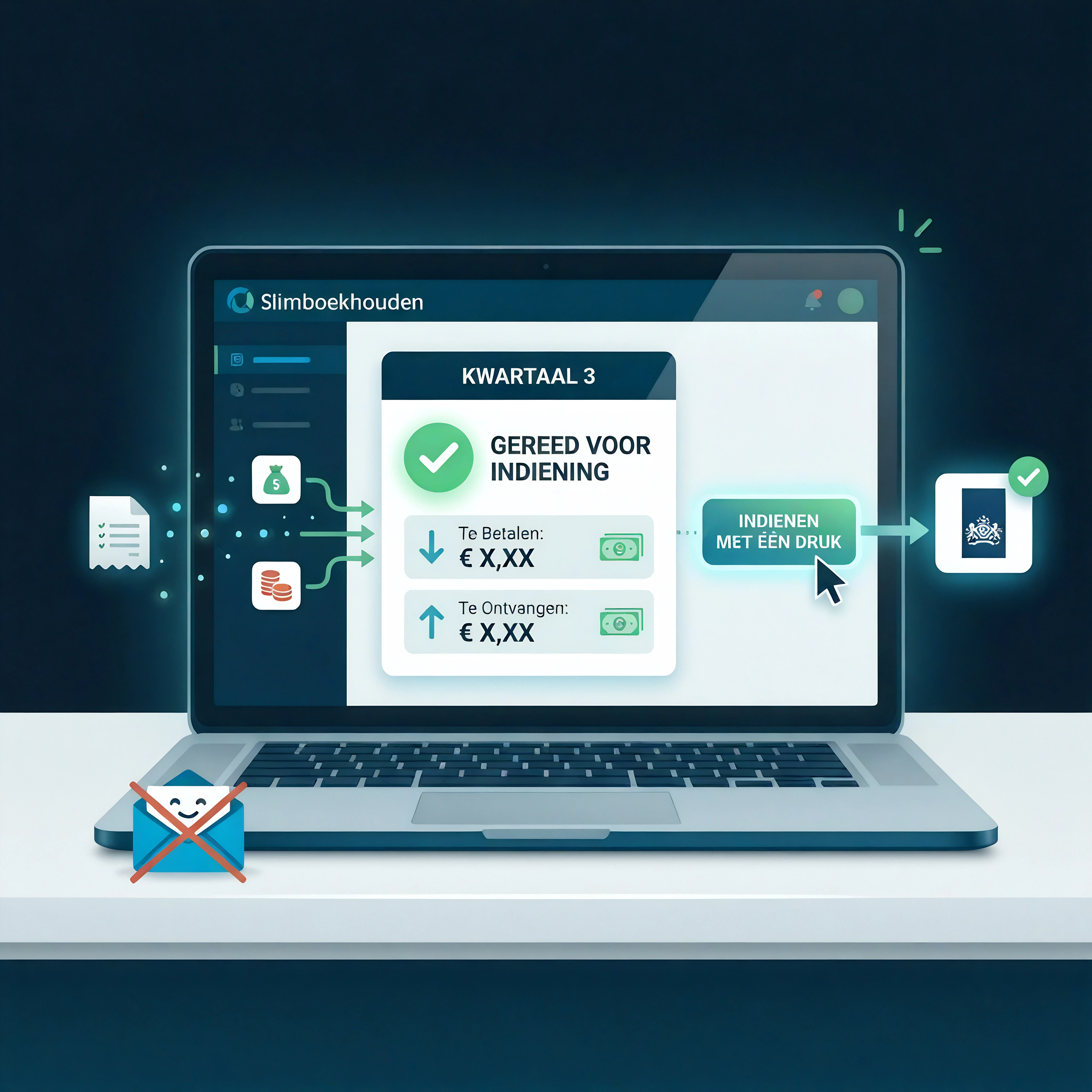 - Je btw-aangifte staat elk kwartaal automatisch voor je klaar.